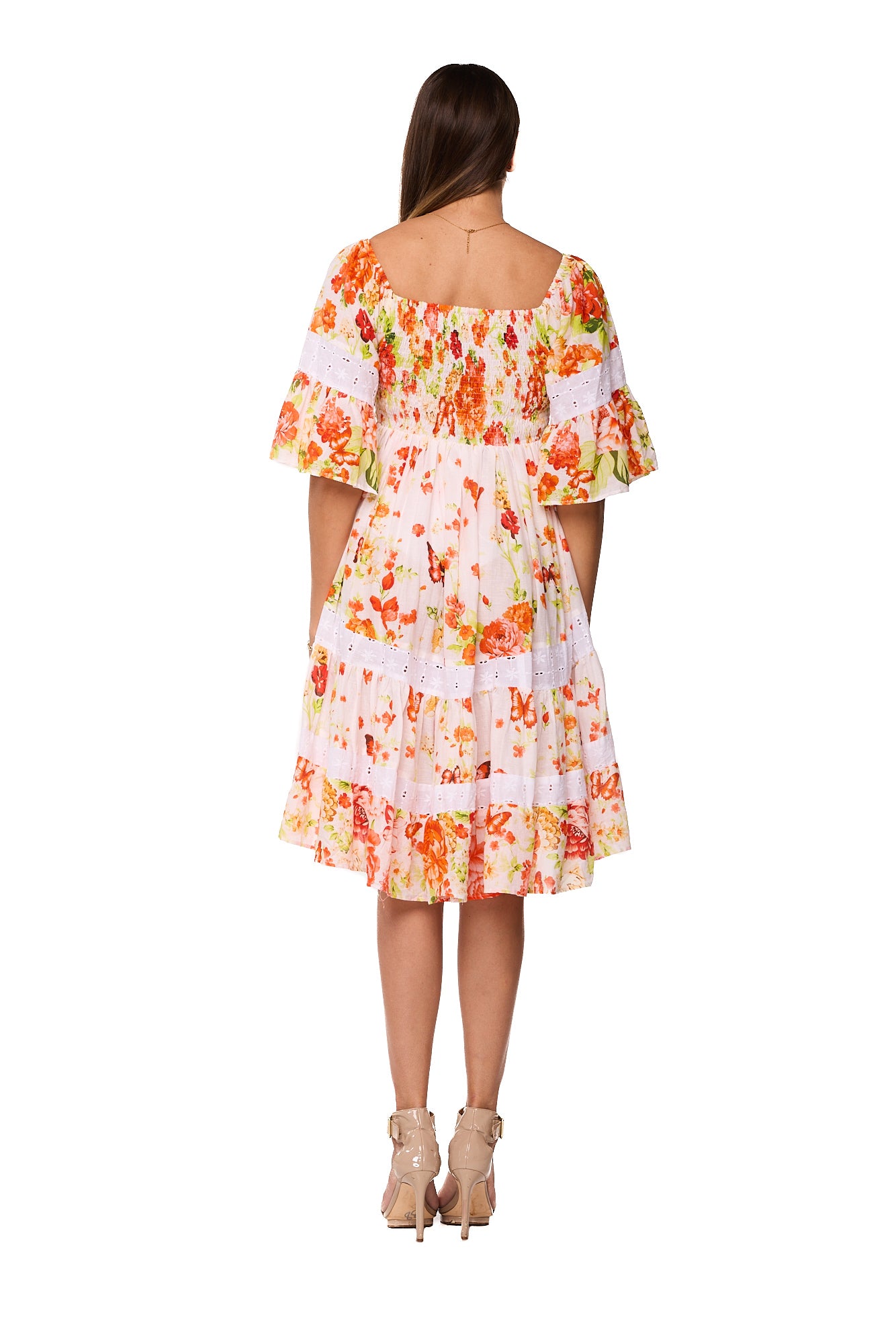 Step into effortless resort elegance with our Sunset Bloom Floral Mini Dress by RANEE’S. Designed for tropical escapes, beach clubs, and summer soirées, this lightweight floral dress features a romantic sweetheart neckline, soft flutter sleeves, and a flowy high-low hemline that moves beautifully with every step.